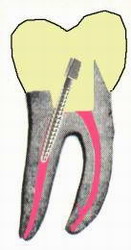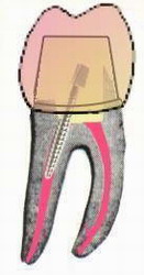 После установки штифтов в корневом канале, на его верхнюю часть накладывается пломбировочный материал. С помощью пломбировочного материала увеличивается объем основы, на которую надевается коронка.